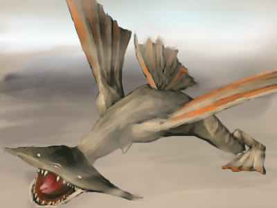 陸での生存競争に負け、水中に活動場所を移したティガレックスの祖先がガノトトスとの混血により魚竜に。